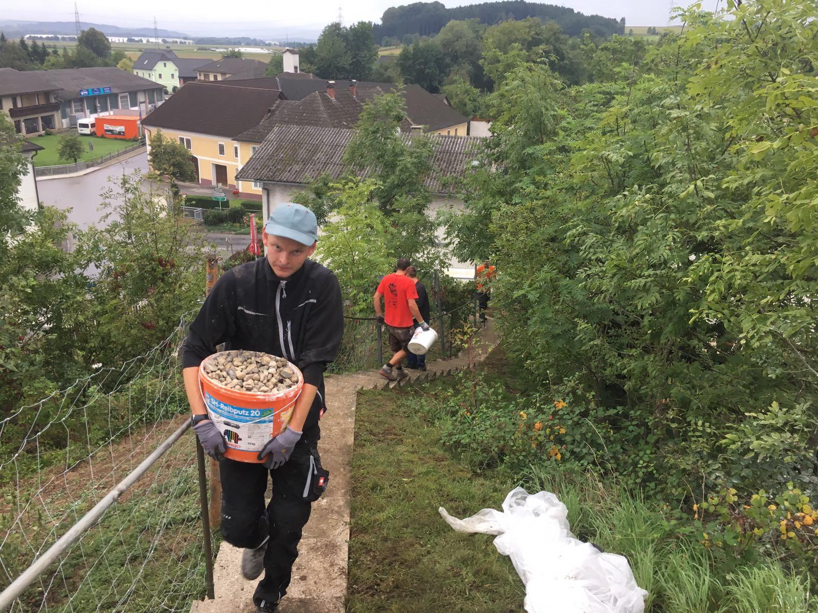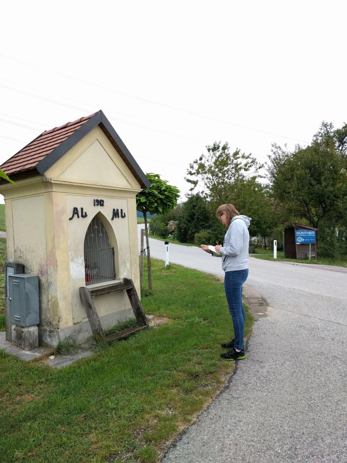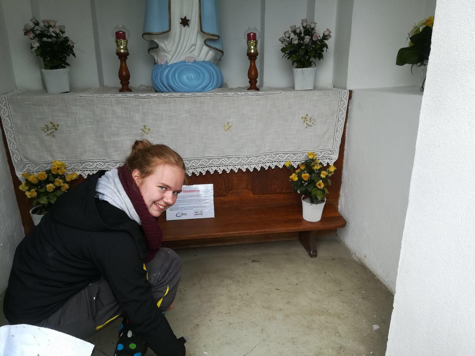 Trotz des schlechten Wetters starteten wir mit voller Power ins Projektmarathonwochenende. Die Aufgabe: Die Marterl im Gemeindegebiet gehören erfasst und auf www.marterl.at eingetragen und der Glockenberg in Karlsbach saniert. Nach einigen Überlegungen kamen uns Ideen über Ideen, wie wir das Projekt am besten umsetzten könnten und sofort wurde mit den Arbeiten begonnen. 42 Stunden wurde mit vollem Tatendrag gewerkelt. Am Ende sind alle Marterl eingetragen, und ein Folder mit den Geschichten zu den Marterl gedruckt. Auch wurde bei einzelnen Marterln ein Geo Cash versteckt. Der Glockenberg erstrahlt im neuen Glanz, Blumen und ein Bankerl runden das Gesamtbild ab.